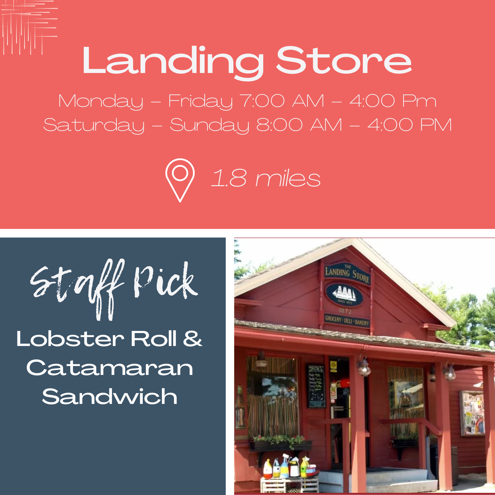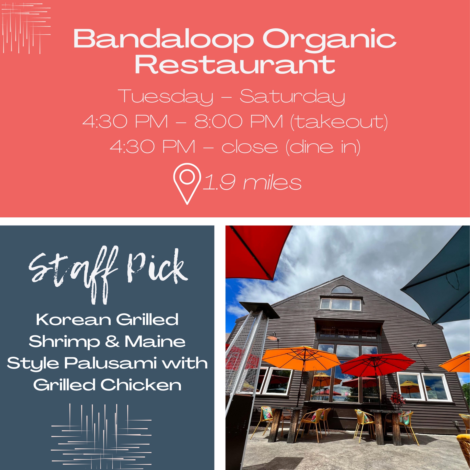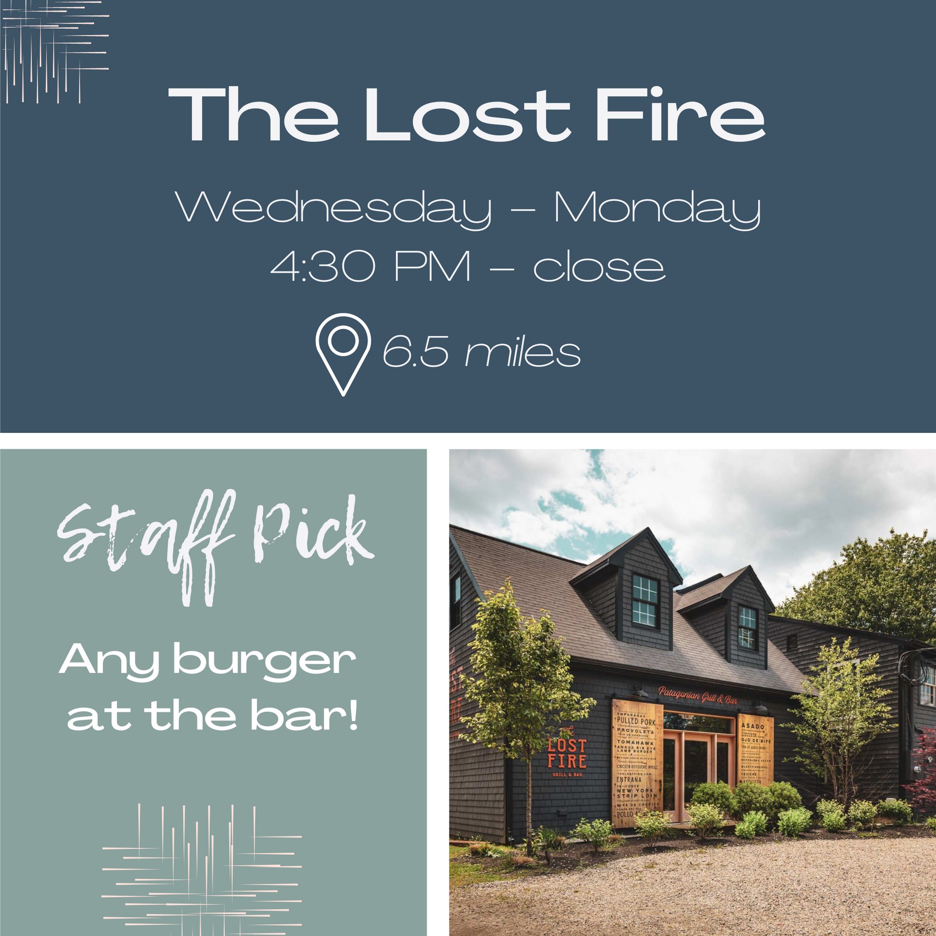 The locals know where to go for great food and ambiance. Here are just a few of the great food choices we love. Some are seasonal. Click on the image to get the most up-to-date information and hours.